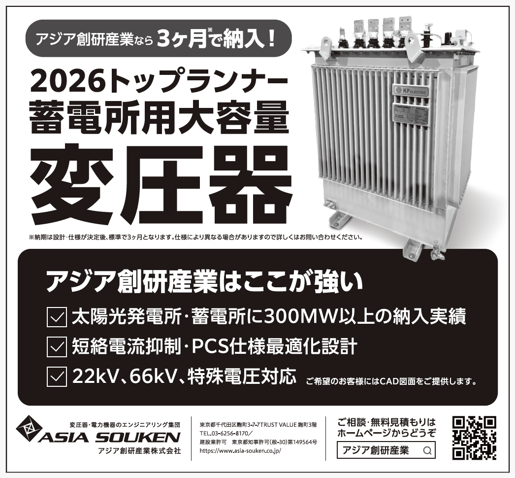 2025.11.25更新日:2026.03.13(蓄電所) 2550kVA, 6.6/550-380V, Huawei製PCS
